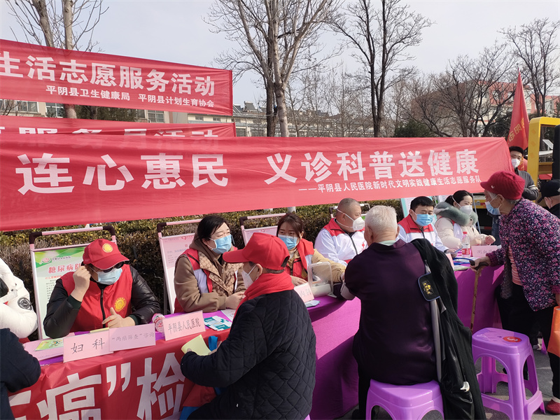 3月3日,平阴县人民医院医帮志愿者在环秀广场开展新时代文明实践志愿服务及红十字健康义诊活动,传播红十字会人道救护理念,践行“人道、博爱、奉献”的红十字精神。