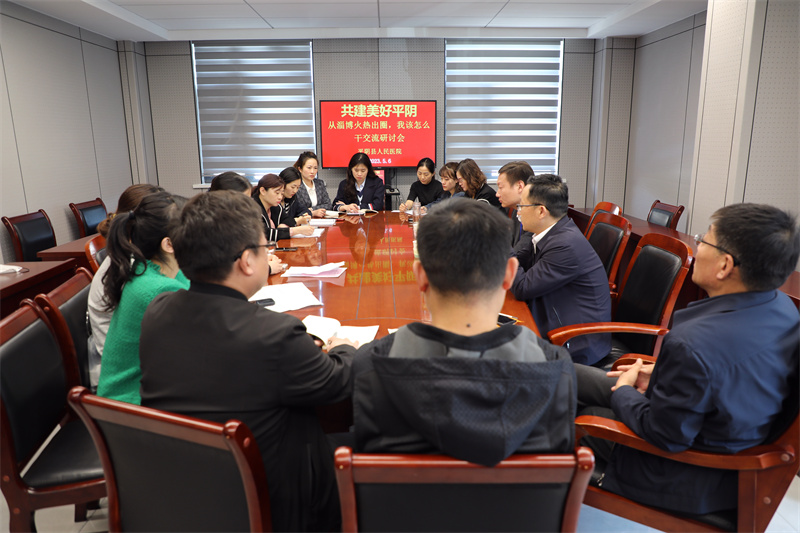 5月6日上午,平阴县人民医院组织开展“共建美好平阴”大讨论活动。医院工会主席于庆军、院委委员/医务科主任孔平、副院长李龑、纪委书记廉立乾、职能科室主任、临床一线医疗护理团干青年参加。