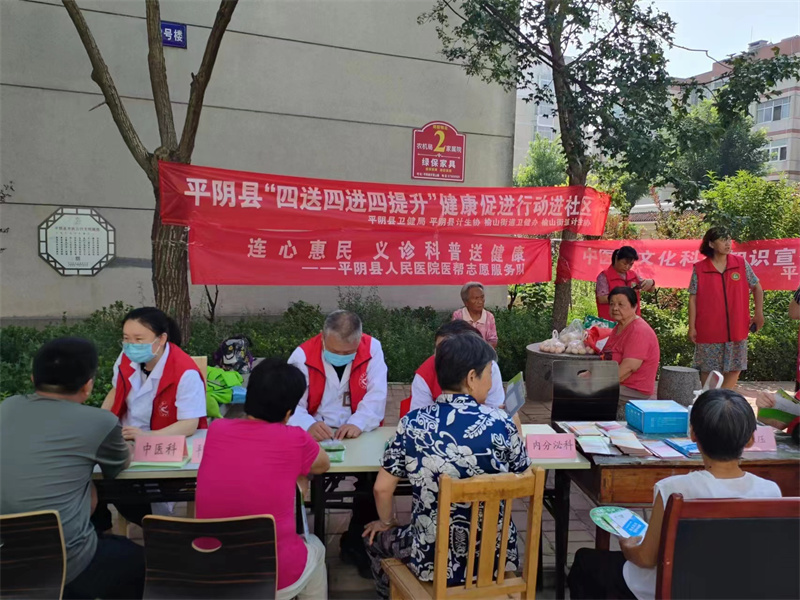 为深入学习贯彻党的二十大精神,进一步提高群众健康服务获得感,推进“四送四进四提升”健康促进行动。8月9日上午,平阴县人民医院组织开展“传播生命知识 护佑百姓健康”大型义诊活动,医疗服务队走进龙珠佳园社区,实现在“家门口”就可以咨询健康问题,真正做到“便民、利民、惠民”。