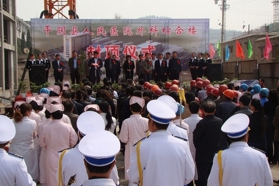 县委常委、副县长翟军在仪式上作了讲话。他说,县人民医院外科综合楼建设是我县重点项目工程,自始至终牵动着县委、县政府和港基集团领导的心,也是方方面面关注的焦点。在短短9个月的时间里,11层外科综合楼主体工程结构封顶,标志着该院中长远发展规划建设进入了关键时期,下一步就要进入内外粉刷、装修、设备安装调试阶段,该楼的尽快投入启用,将极大地改善医院基础设施条件,医院综合服务功能将提高到一个新的水平,更好地为平阴37万人民群众健康服务,有力地推动全县医疗卫生事业的快速、持续发展。同时,他希望县人民医院依托信息化建设,加大公立医院改革步伐,借力“三年突破平阴计划”,力争用三年时间,把县人民医院建设成为辐射鲁西南的三级综合医院。