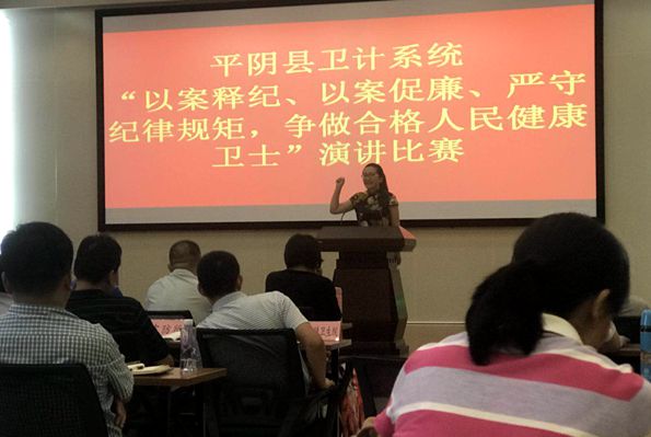 举办本次演讲比赛,旨在进一步加强卫生计生系统廉政文化建设,增强干部职工法纪观念和廉洁自律意识,强化警示教育。从全县各医疗机构选拔推荐的14位选手,结合自身工作经历和感受,围绕近年来系统发生的违纪违法案件,深入剖析,以案释纪,以案释法,促廉政守纪律讲规矩。他们用朴实无华的语言与声情并茂的演说,从不同角度阐释了对严守纪律规矩,争做合格人民健康卫士的理解,述说了作为一名医务工作者所肩负的责任、使命与担当。