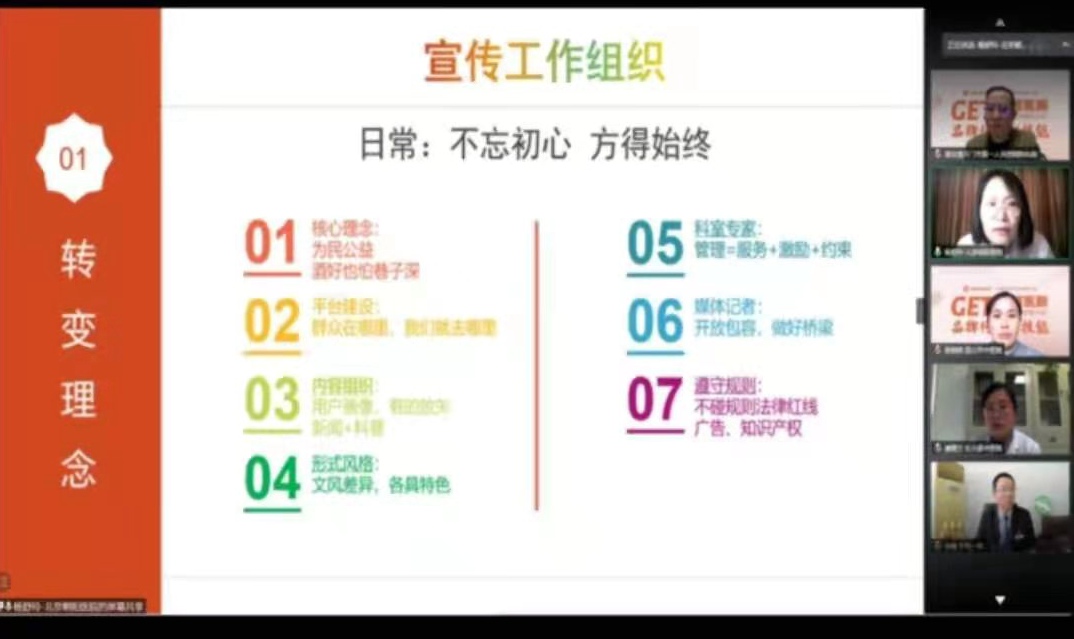 本次直播由中国医药卫生文化协会学术部、医联体促进分会支持,健康县域传媒和《中国农村卫生事业管理》杂志联合主办,健康界特别支持,湖北省天门市第一人民医院纪委书记陈伯勋主持。直播中,首都医科大学附属北京朝阳医院宣传中心主任杨舒玲、江苏省昆山市中医院文化办主任夏艳婷、浙江省长兴县中医医院党建办副主任潘建兰、山东省宁阳县第一人民医院宣传科科长李峰,就县域医疗机构如何通过健康传播乘风破浪擦亮医院名片,如何破解每天刊发专家坐诊和会议报道新闻之怪圈,如何树立开门搞宣传、联合搞宣传的大宣传理念,如何借助宣传工作创作文化精品、打造文化品牌,从而最终实现做强新闻宣传、做亮典型宣传、做深科普宣传,做优文化宣传、做活创新宣传、做精品牌宣传、做实规范宣传等结合具体案例进行深入浅出的讲解。