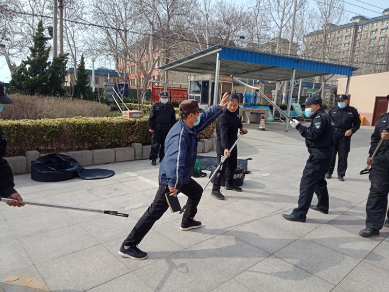 现场演练“防爆”“抓捕”“拦截”等多项科目,由一名保安队员扮演凶徒,雷庆斌为保安队员现场教授警棍盾牌、钢叉、脚叉使用方法及技术。他要求全体保安队员充分认识两会安保严峻形势,严格执勤,加强信息报送,快速果断处置突发事件,排除院内涉恐隐患,确保万无一失,保证两会圆满完成。