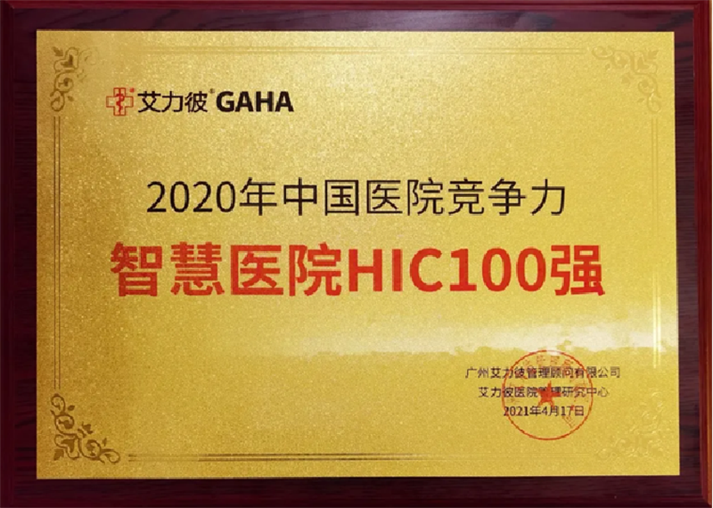 2020年中国医院竞争力智慧医院HIC100强