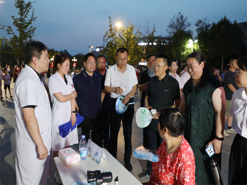 与消夏晚会同步进行的“消夏健康义诊夜市”热闹非凡,成为夏夜最暖心的风景线。平阴县人民医院作为医共体牵头单位,组织多学科专家团队全方位守护群众健康。